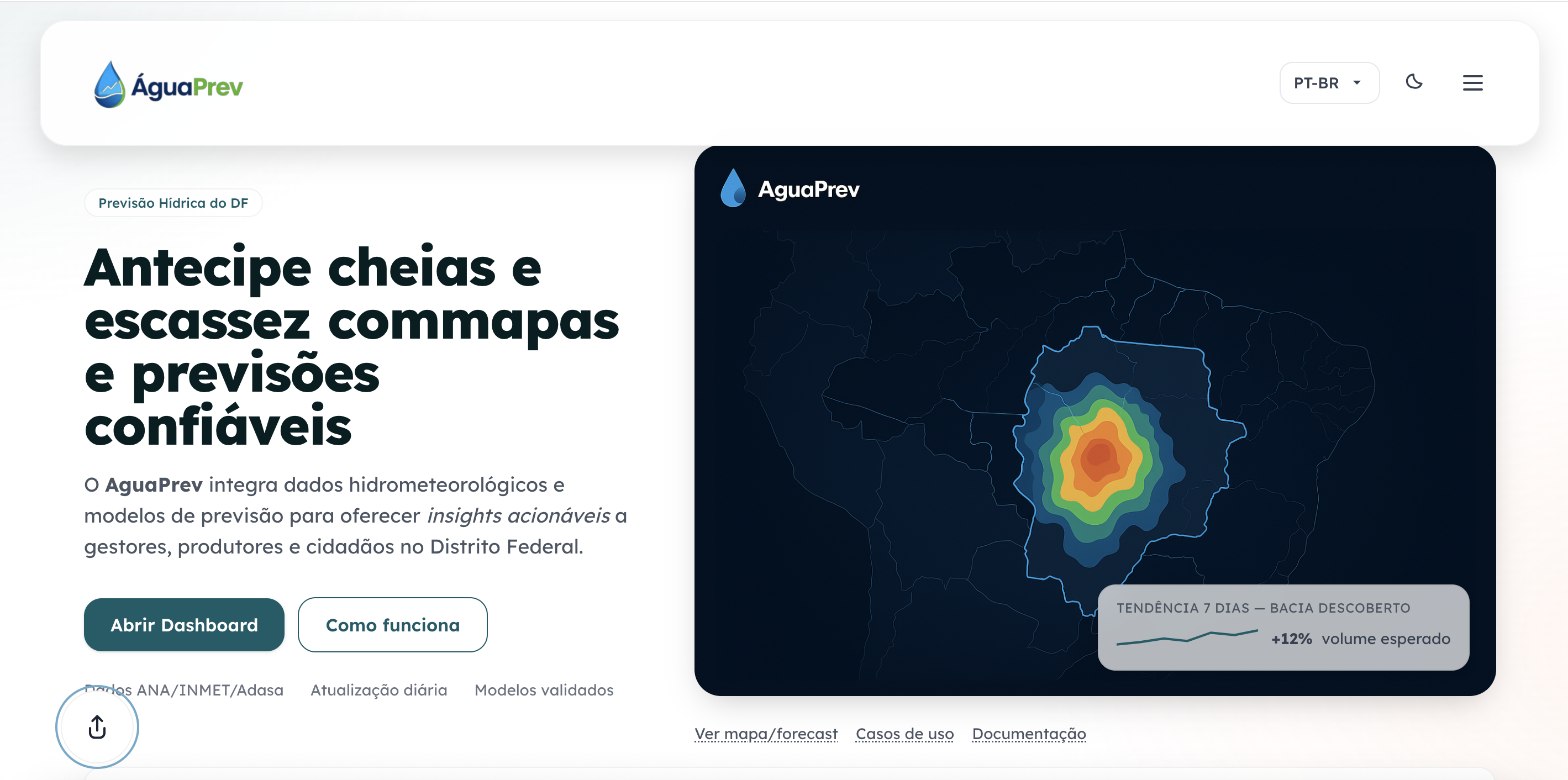 O Aguaprev é uma plataforma de código aberto projetada para analisar dados complexos sobre os recursos hídricos, focando inicialmente em informações de barragens e precipitação no Distrito Federal. Utilizando o poder do Machine Learning, o sistema processa esses dados para gerar relatórios claros e objetivos, tanto para especialistas da área quanto para o público em geral.